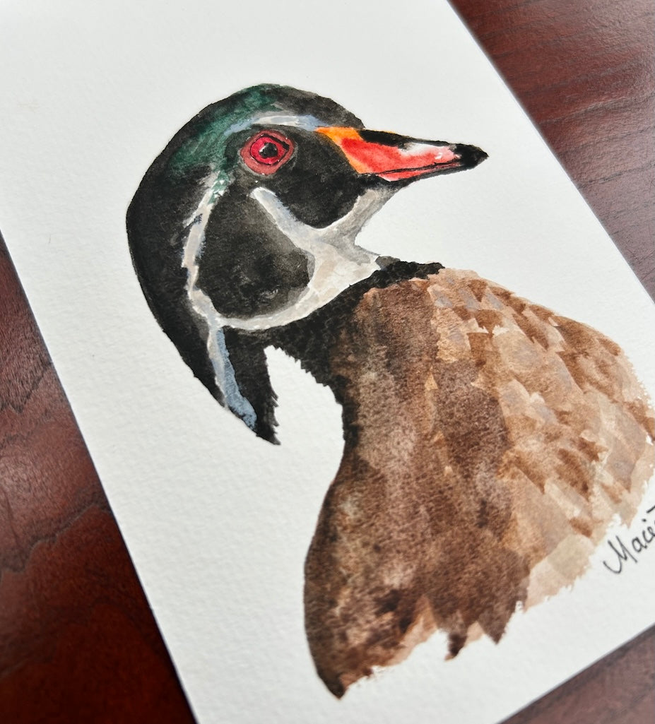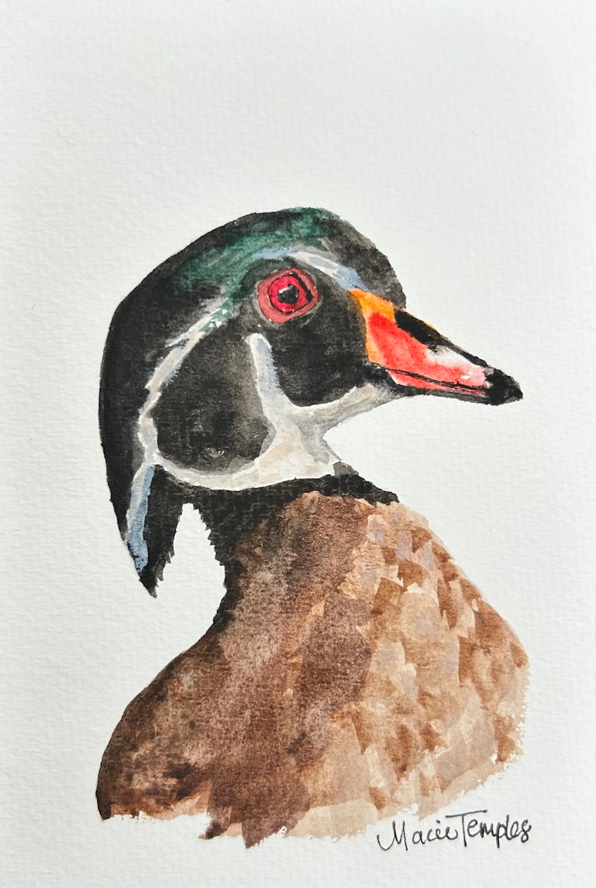 This small study of a wood duck drake highlights its bold colors and sharp features, capturing the character of one of the south’s most striking birds. The simplicity of On the Wing draws focus to the eye and feathers, serving as a reminder of the joy and safety found in God’s presence.